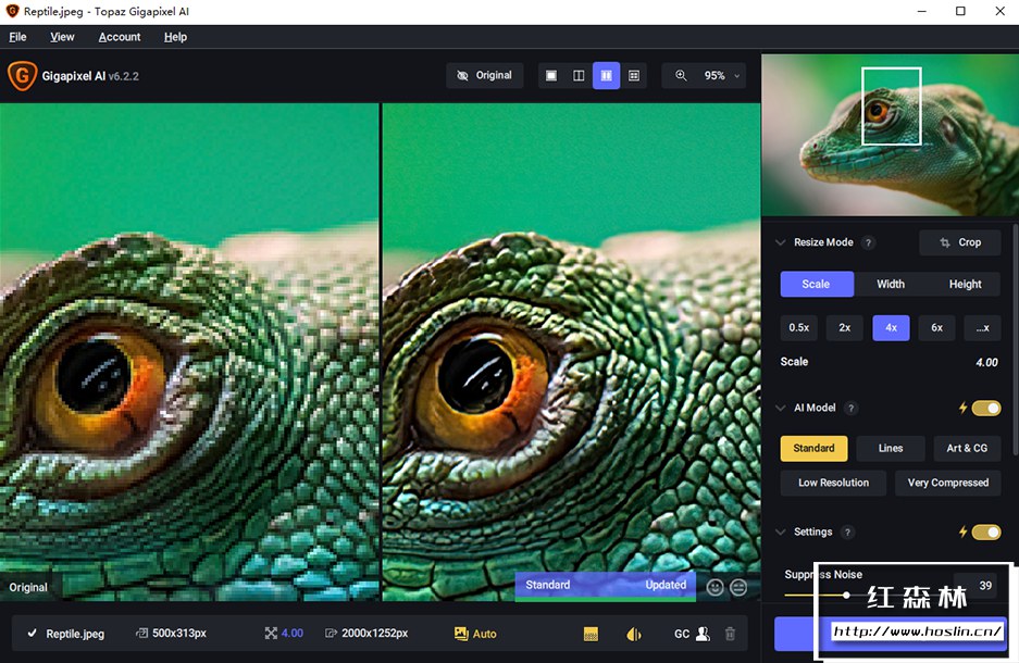 当您将一张低分辨率图像导入 Gigapixel AI 并选择放大倍数(最高可达600%)后,软件并非简单地拉伸像素,而是启动其AI模型进行分析。它会: