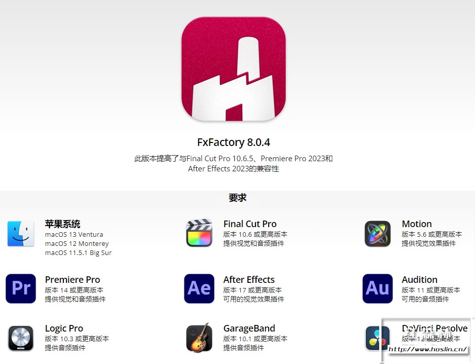 FxFactory 程序兼容信息: