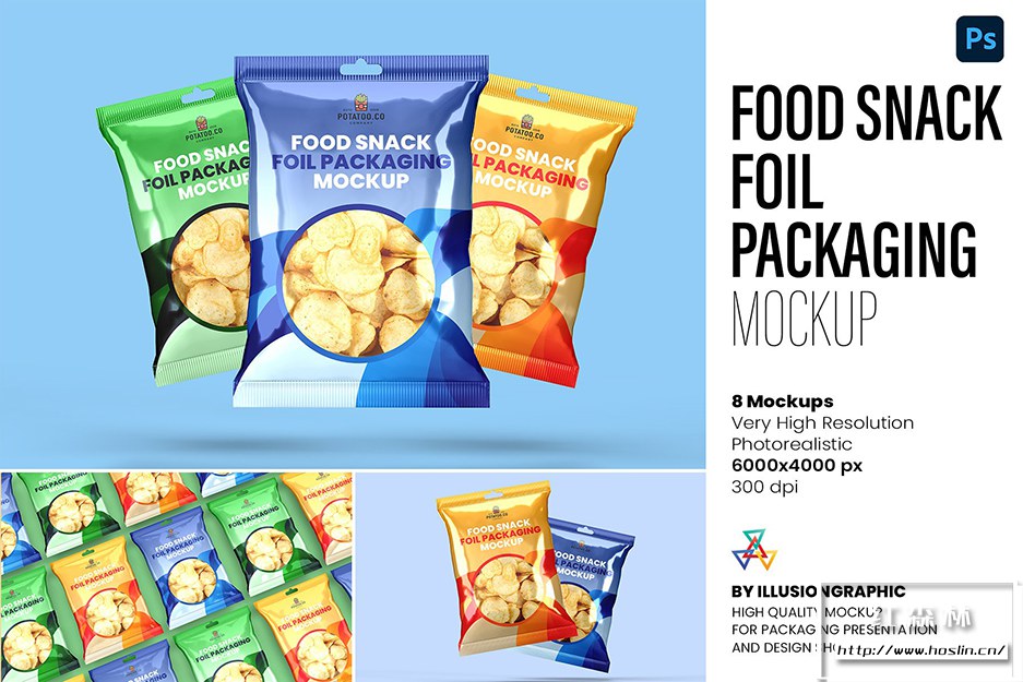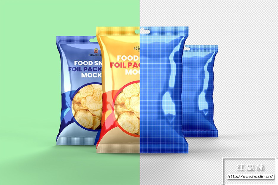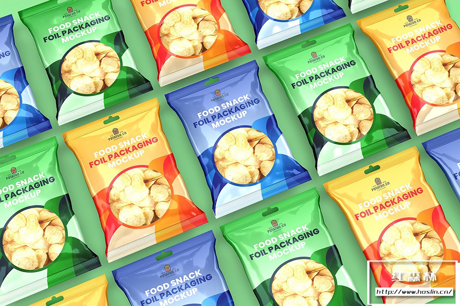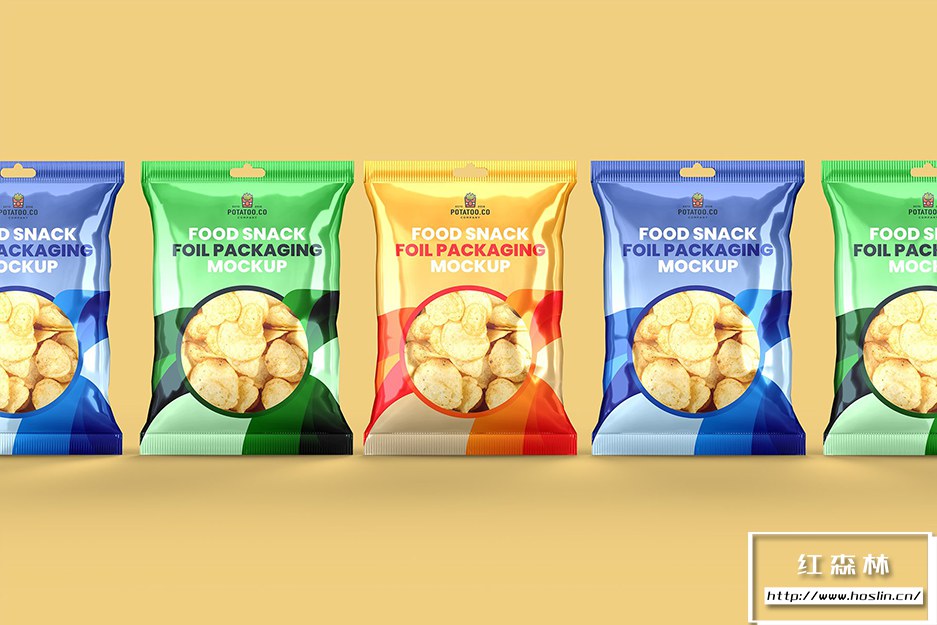 使用这些高质量的模型节省时间并为您呈现下一个食品零食箔包装设计的风格。