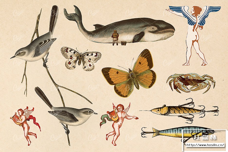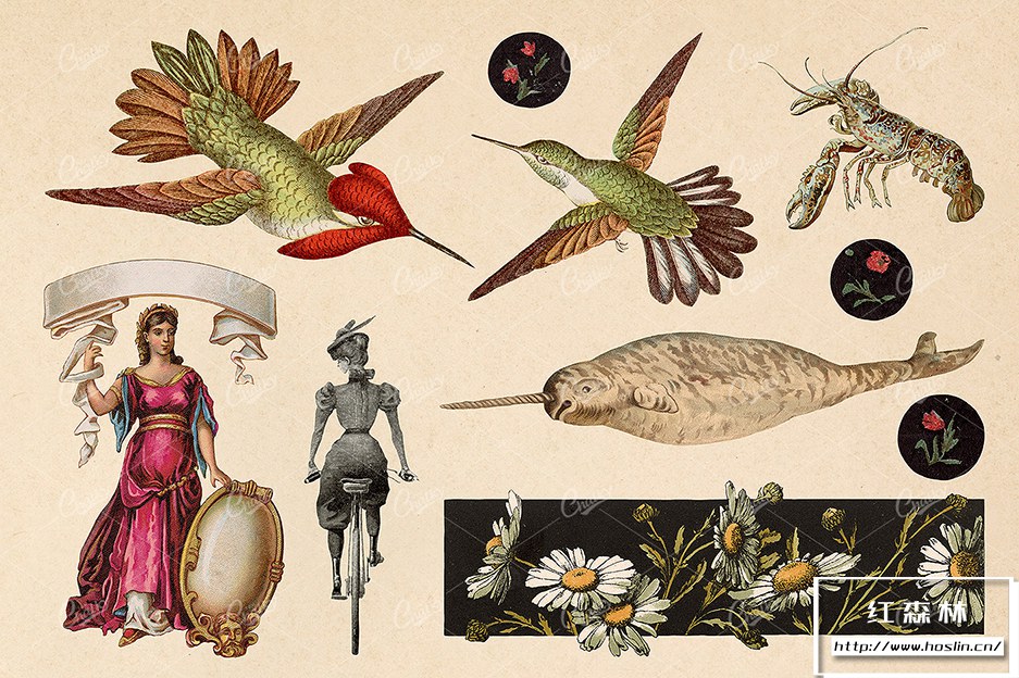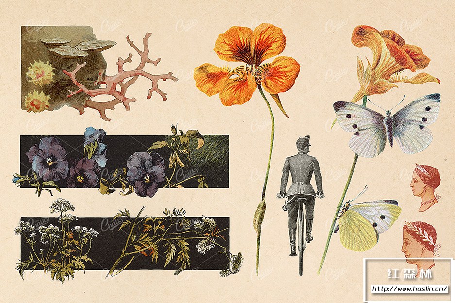 介绍我们的 Vintage Collage Creator 系列的第二卷;每卷都将包含在我们的私人复古书籍和蜉蝣图书馆中发现的精美插图集。以“拼贴式”风格与他们的背景隔离,并准备好摇滚您的现代设计项目。