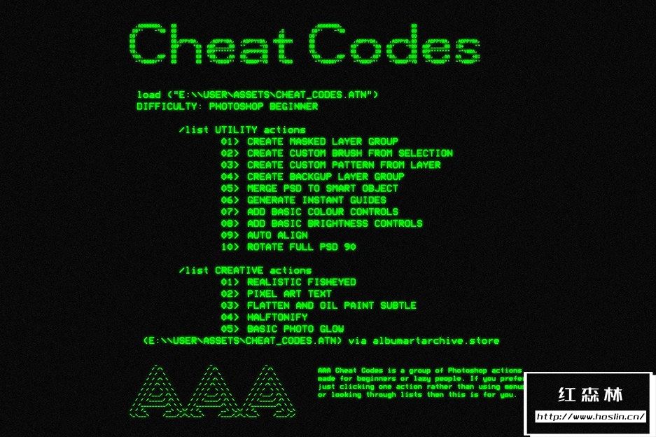 AAA Cheat Codes是一组为初学者或懒人制作的 Photoshop 动作。如果您更喜欢单击一个操作而不是使用菜单或浏览列表,那么这适合您。还包含一些仅供初学者使用的创意功能。