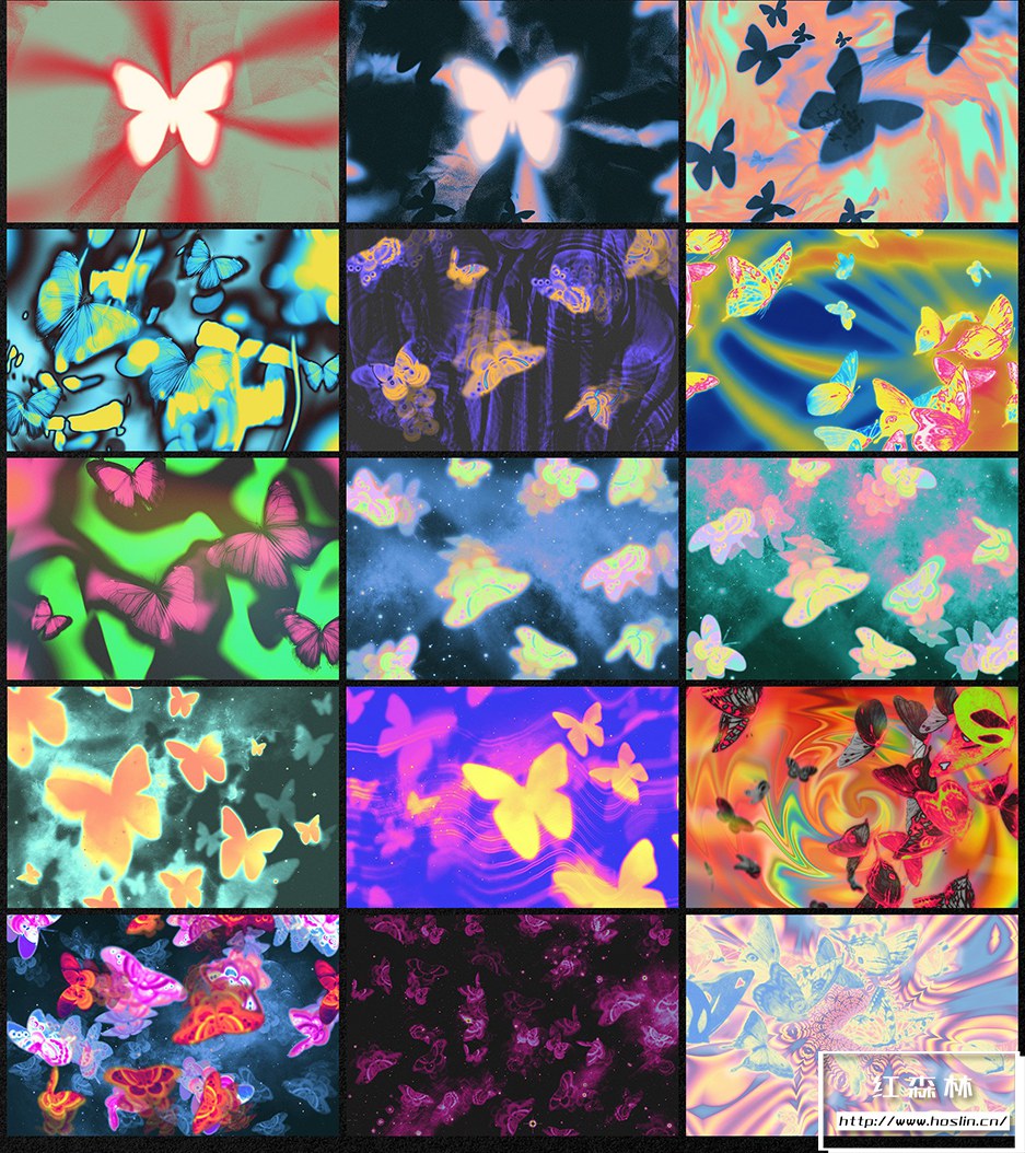 一系列以自然为灵感的背景,带有各种梦幻般的蝴蝶景象。