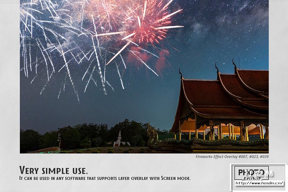 适合业余爱好者和专业人士。在彩色和黑白照片上效果极佳。为了您的方便,在屏幕/滤色模式下添加了用于选择和覆盖叠加层的操作。这将适用于 Photoshop 和 Photoshop Elements。Fireworks Effect Overlays 可用于任何支持屏幕模式下图层叠加的图形编辑器。