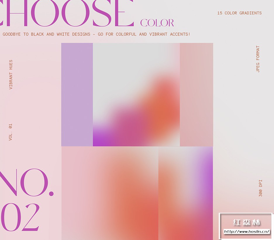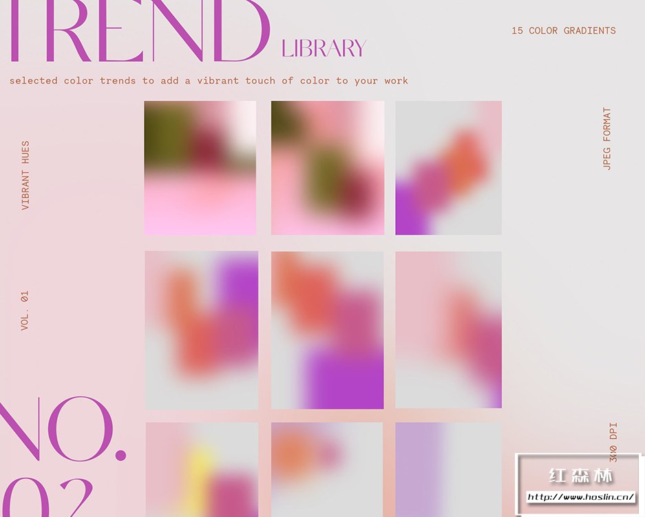 - 15 张彩色渐变纹理(约 4956 × 7016 像素,300 dpi,JPEG 格式)