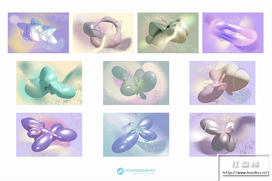 关于产品:Iridescent 3D Abstract Backgrounds