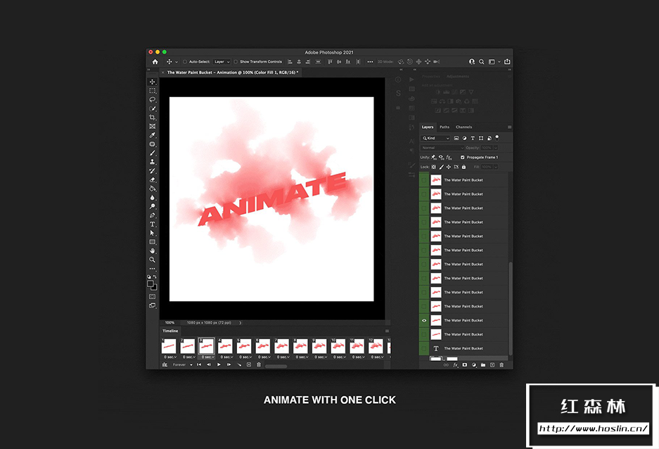 Water Paint Bucket 是我们全新的一键式 Photoshop 动作,超级易用,超高分辨率,让任何东西看起来都像是您笨手笨脚地洒了一些水在您的设计上。只需单击两次,您就可以洒出一些水并自动为其制作动画,所有这些都在 Photoshop 中完成。