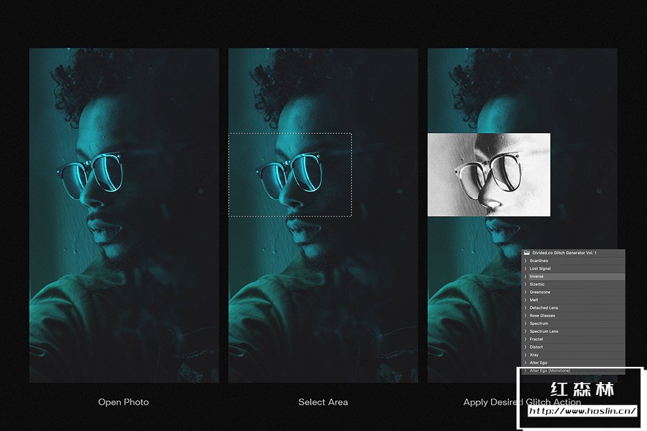 使用我们的故障发生器“倒带”进行干扰和扭曲。15 个独特的一键式Photoshop Actions捆绑到完美的集合中,为您的设计增添完美。