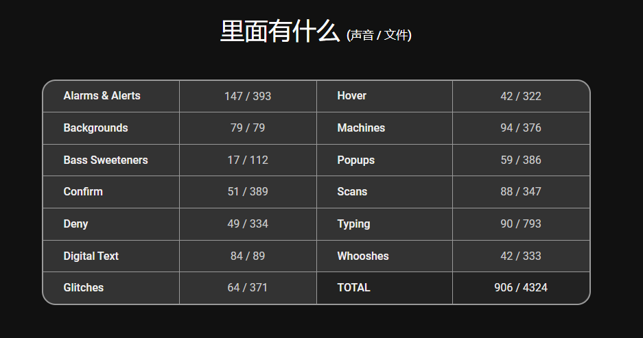 音效数量:180个WAV文件,4300多个音效