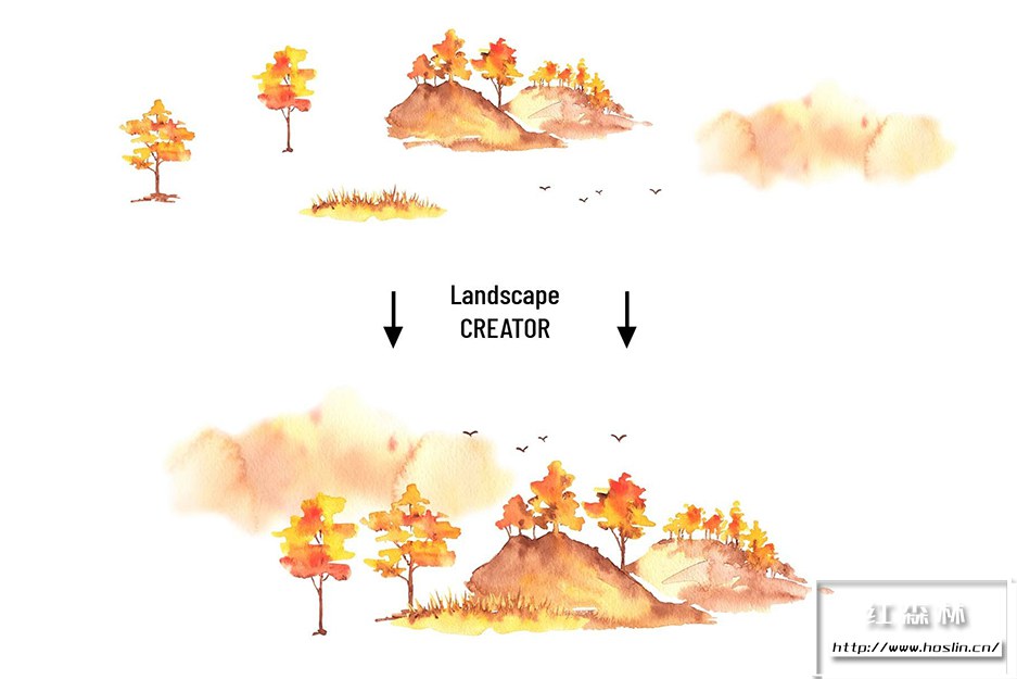 关于产品:Watercolor Fall Forest Landscape Creator