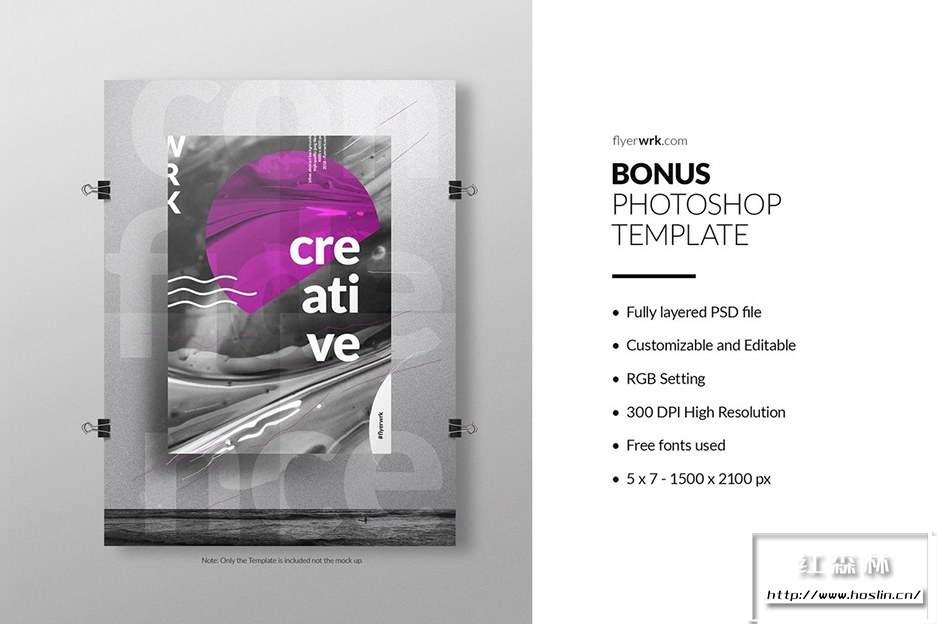- 附带一个预览文件和一个 Bonus Photoshop 模板。