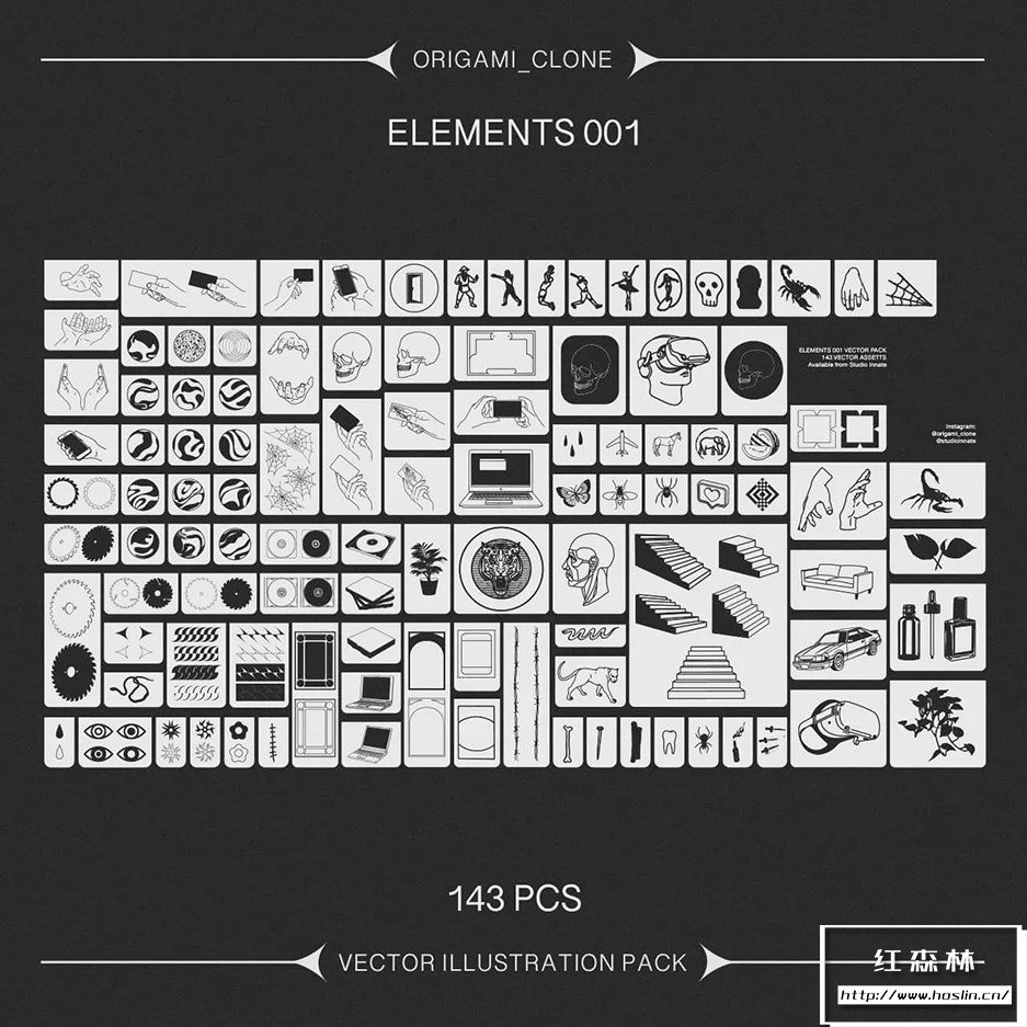 这个 Elements 001 包是第二个高级插图矢量包,包含 143 个新矢量,可供您在设计中使用。多亏了这个新的 Elements 001 矢量包,准备为您的设计提供全新的深度水平。您在创建新设计时会被宠坏。