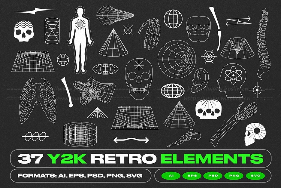 37 个适用于任何图形软件的 Y2K 复古元素。设计师的最佳伴侣。只需添加可立即提升工作质量的元素。制作漂亮的海报、包装设计、社交媒体帖子和数字图形。