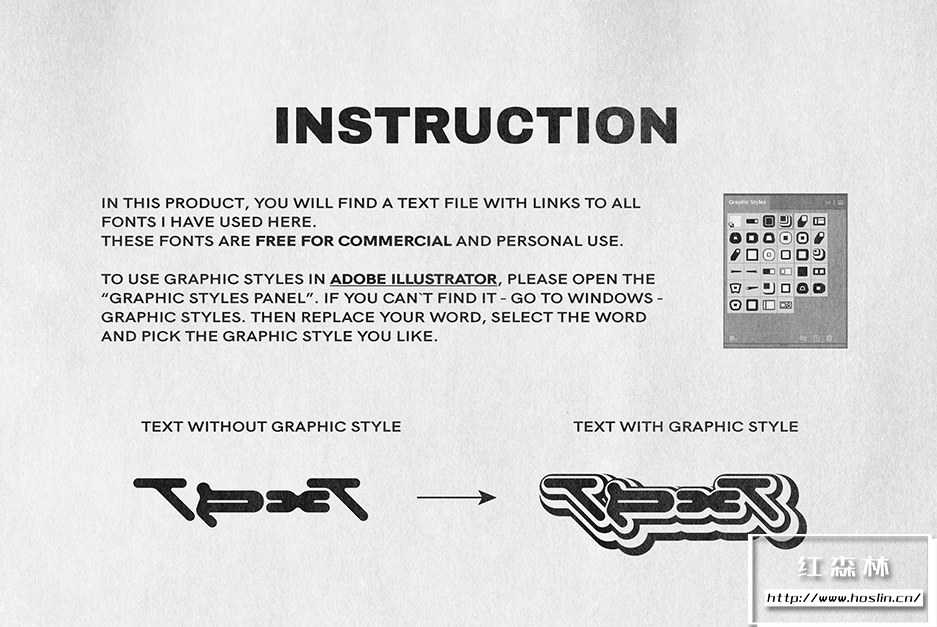 您可以在任何矢量图形软件中轻松编辑矢量文件。重新着色、缩放、变换。光栅文件适用于任何光栅(基于像素)图像编辑程序。Adobe Illustrator 中的可编辑文本和图形样式。所有字体链接在产品文件中,均可免费下载。