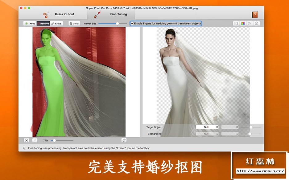 Super PhotoCut Pro 是世界上首创的一款前所未有的自动裁剪透明物体和婚纱的工具。