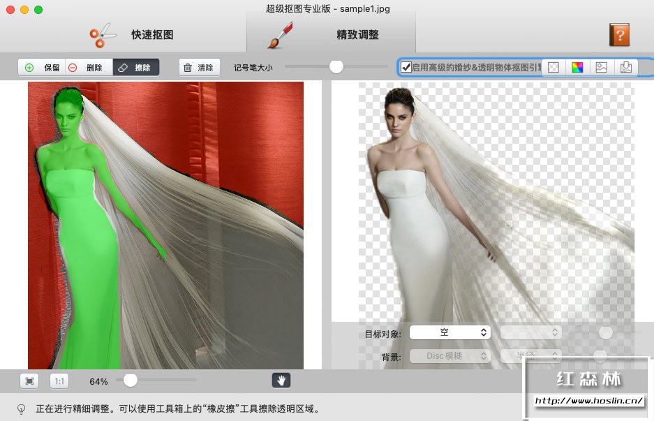 - 轻松将前景从复杂的图像背景中分离出来。实时预览最终效果。