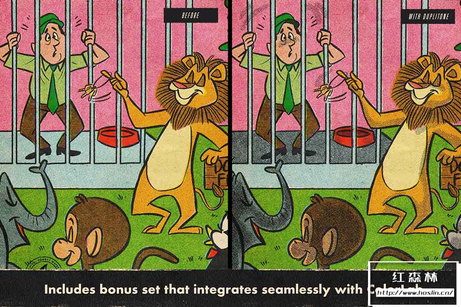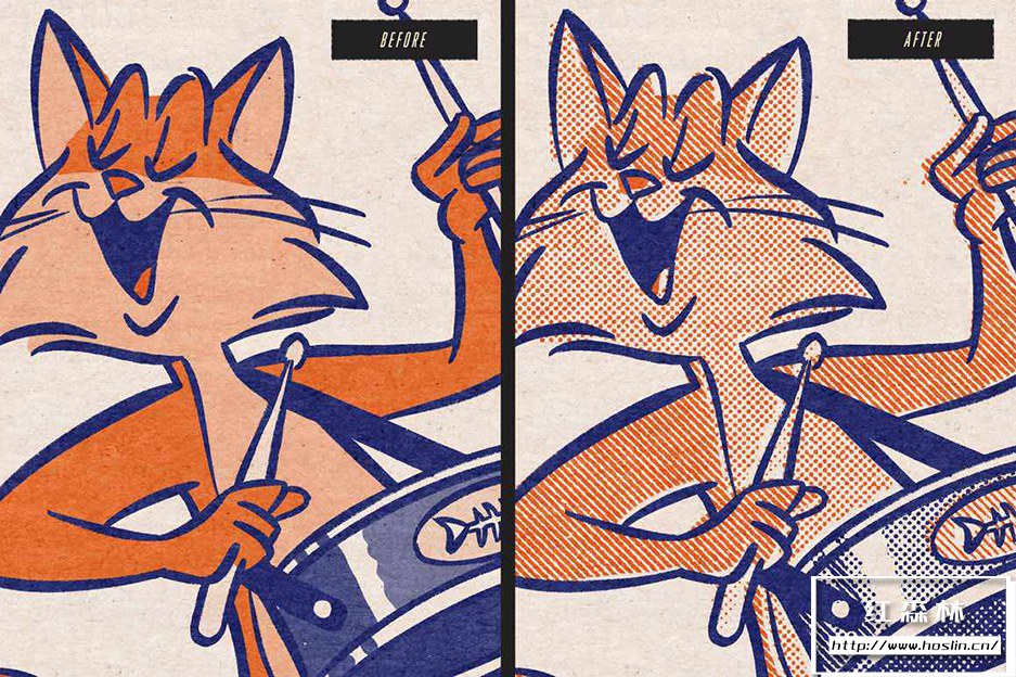 在DupliTone之前,您要么必须使用Photoshop有限的默认画笔功能,要么如果您很敬业,请扫描真实的半色调并添加蒙版。即使做了所有这些工作,结果也远非真实。如果您需要更复杂的色调变化来进行着色,您可能会发现这项任务几乎是不可能的。DupliTone从一开始就考虑到了经典的复古胶印。捕捉消费品包装、廉价印刷作品和蜉蝣上的经典印刷外观。