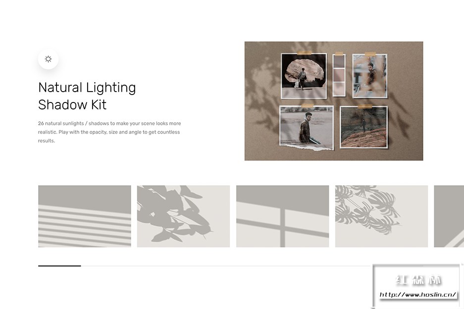 使用我们的 Moodboard Mockups Scene Creator 让您的情绪板演示更具吸引力。您可以轻松旋转项目、更改颜色并添加您的设计。调整光影不透明度以获得不同的对比度。为了让您有一个更好的开始,我们制作了一些可以使用的预制场景。只需将设计替换到智能对象层,点击保存即可。此包带有 26 种自然阳光/阴影,使您的场景看起来更逼真。