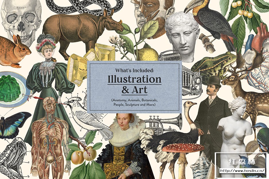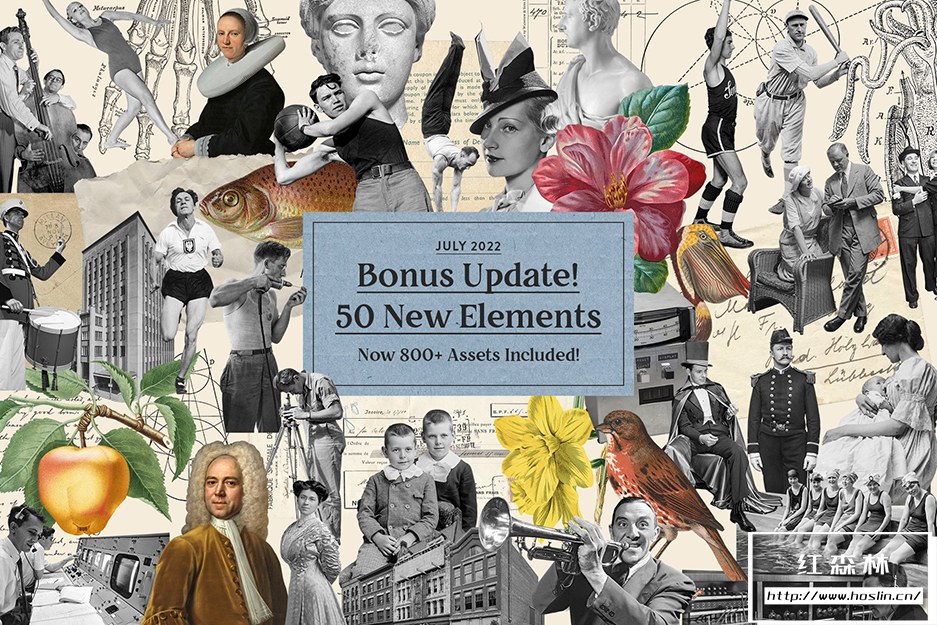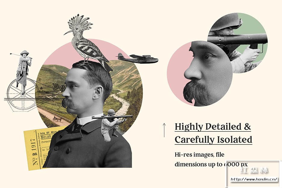 这个巨大的包包括750 多种资产(更新:现在 800 多种) ,这些资产来自各种复古照片、插图、艺术和蜉蝣。所有图像都非常详细,长边的尺寸从 2000 像素到 6000 像素不等。图像被仔细隔离,没有锯齿状或模糊的边缘。