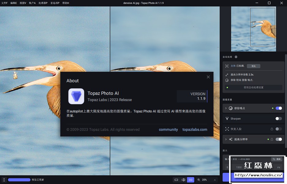 降噪(Topaz Denoise AI)在从数百万张图像中学习后,Topaz Photo AI 的降噪模块可以自动识别您图像的内容。它可以准确的确定真实图像细节和噪点之间的差异,准确度惊人。