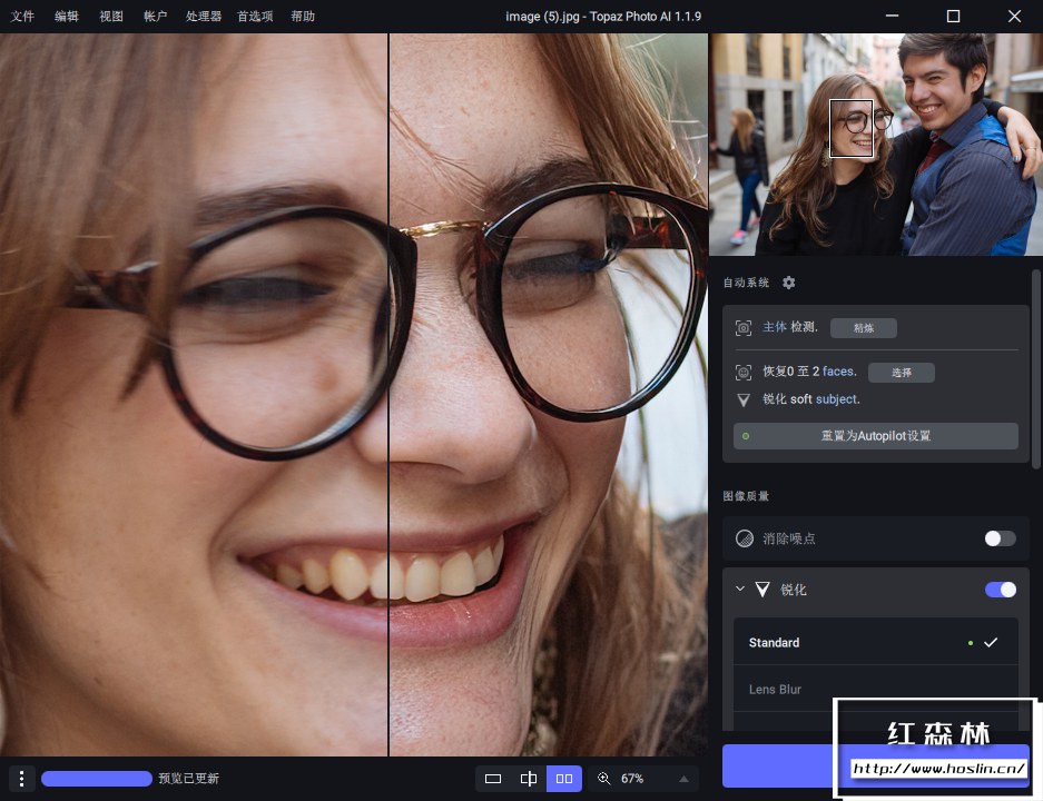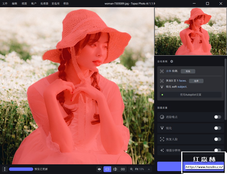 Topaz Photo AI 有一个名为 Autopilot(自动系统)的功能,它可以自动分析一组照片并应用它确定的正确模型和设置,然后摄影师可以将其用作进行创意编辑的起点。Topaz Photo AI 帮助消除了手动修复常见图像问题的乏味,让您可以专注于摄影的创意部分。