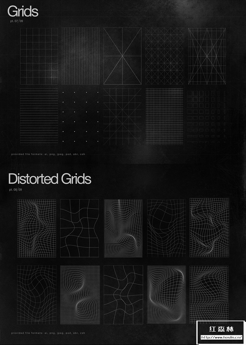在此包中,您将获得 9 组,其中包含可变纹理、形状、网格和画笔。使用这些以各种文件格式和高分辨率提供的图形,您可以构建独特而真实的艺术品。非常适合布局、传单、海报、社交媒体、封面和任何您可能想要的东西。它们包含如下内容