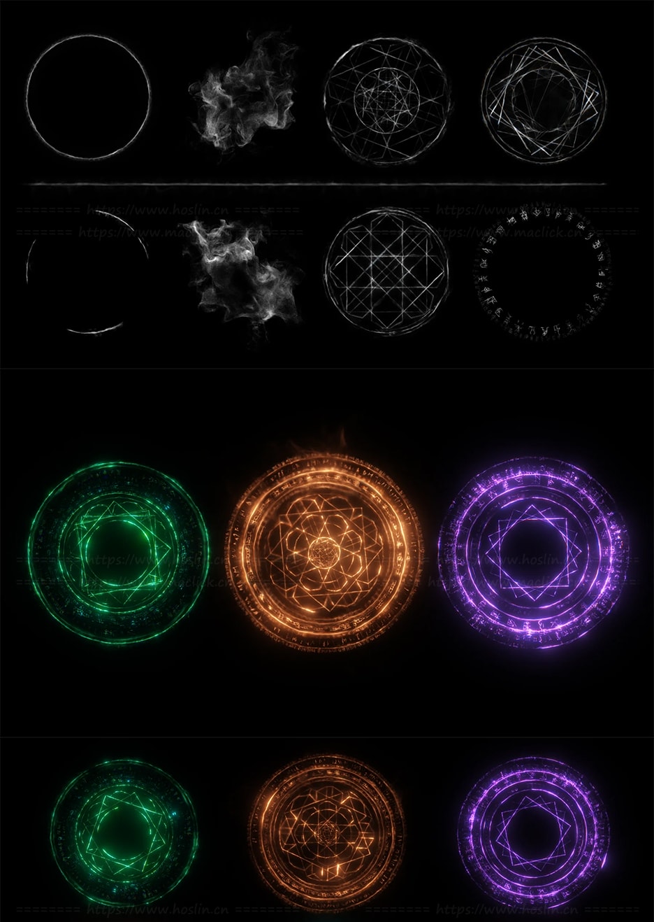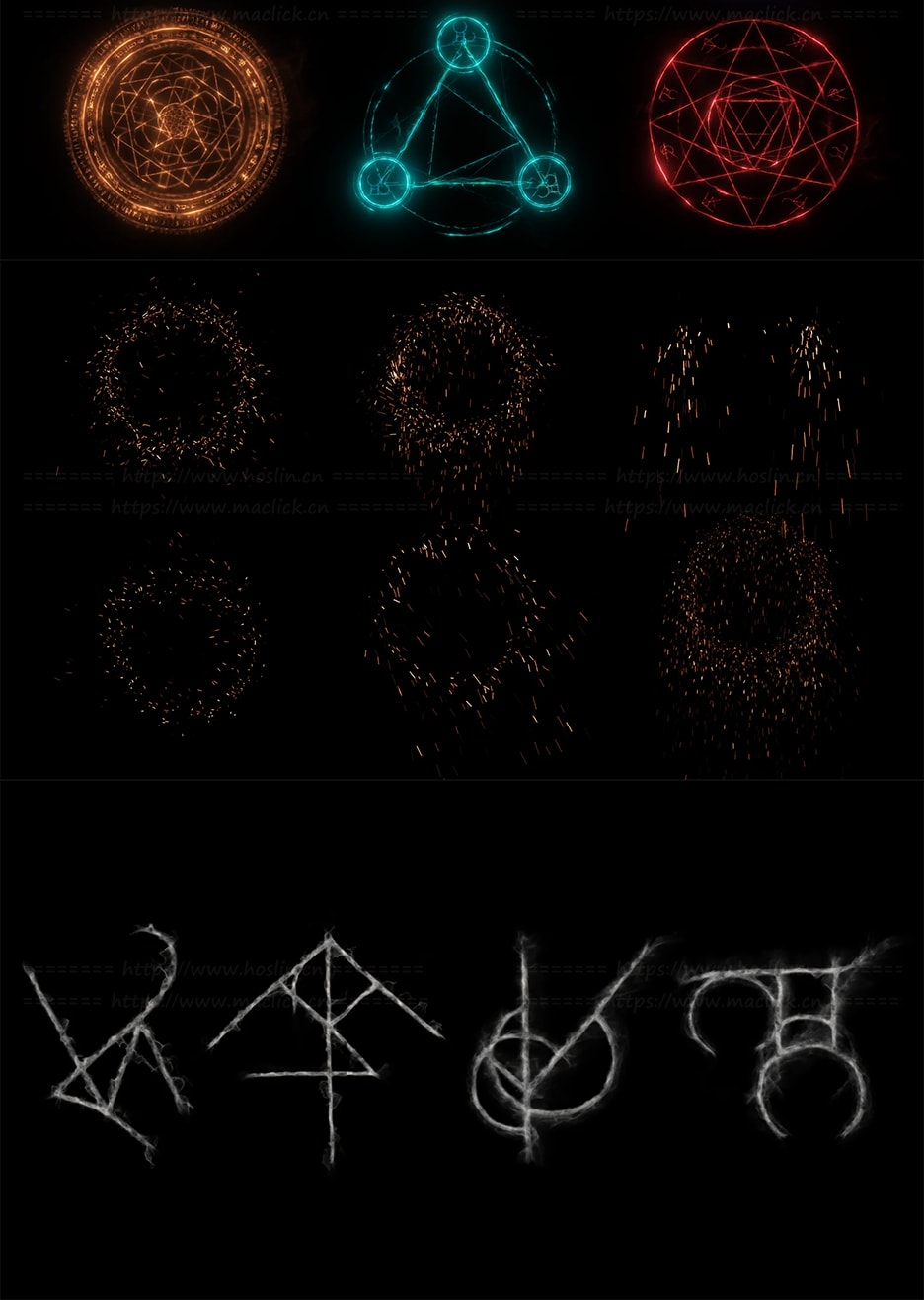 Magical Symbols VFX Pack 是用于 VFX 合成和图形设计的 80 个素材资源的集合。这些资产以 prores 和 4K 格式渲染,共5中类别包括元素、形状、盾牌、火花和神秘符号。非常适合创建类似于奇异博士、上古卷轴和魔兽世界中的魔法印记、字形和战斗效果。
