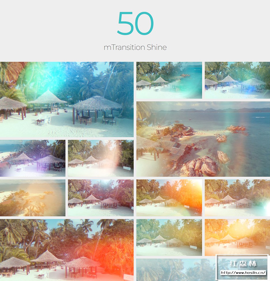 mTransition Shine 是一套转场插件,提供 51个光效过渡,它充满美丽的炫光泄漏、发光和闪光,在镜头之间带来活力,让您正在处理的每个主题都充满活力。像这样的逼真有机效果可以使任何编辑更加明亮并充满自然光并让您的项目大放异彩。 还可修改光效翻转强度颜色棱镜等参数。特别说明:插件仅提供光效转场过渡,没有预览视频中的标题人物风景等实拍素材。