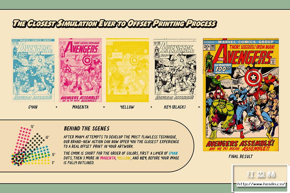 这里有人错过了基于 CMYK 的良好旧式 4 色印刷吗?那么你的时机再好不过了。邀请您亲眼目睹当科学与艺术结合在一起以快速浏览时对观众产生最大吸引力的惊喜。再一次,我们在新的Hyperpix Photoshop 动作中追求最高质量,并通过一流的胶印模拟器实现了这一目标。当然不是成为 Photoshop 设计师的最佳时机。想象一下一个人必须错过的所有乐趣和天才!