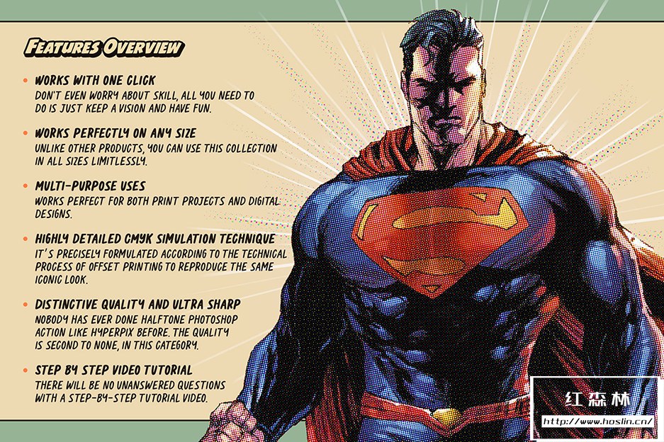 - 独特的品质和超清晰:以前没有人像 Hyperpix 那样做过胶印 Photoshop 动作。在这个类别中,质量首屈一指。
