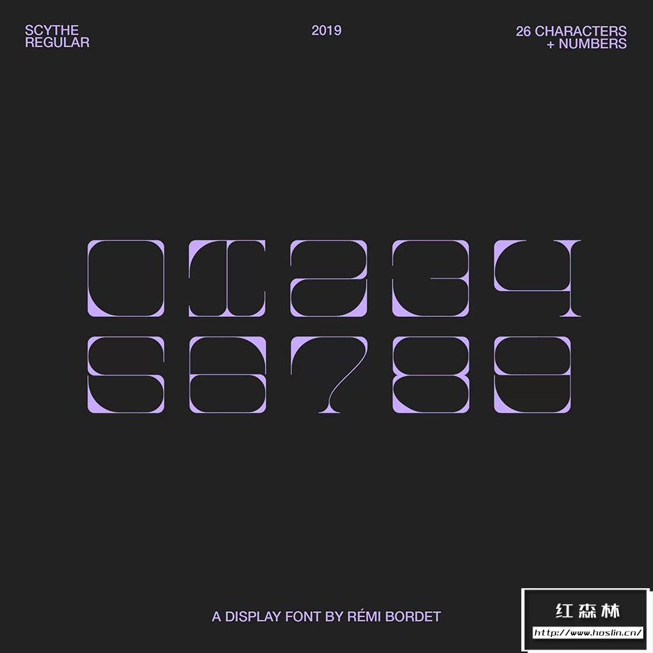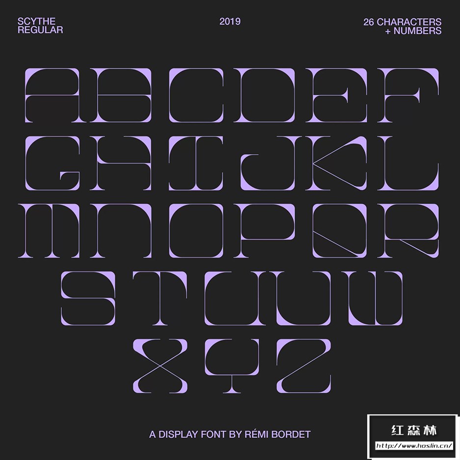 Scythe 是一种实验性的方形衬线字体,灵感来自镰刀形状。包含 26 个字符和10个数字。