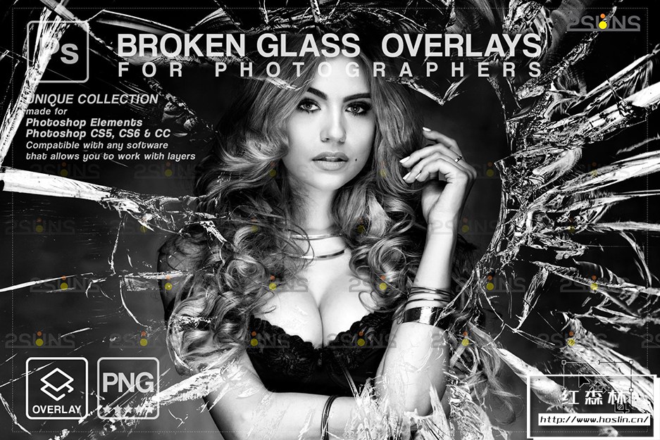 美丽的碎裂玻璃照片叠加合成效果PNG素材,简单好用。只需将其放置在您的素材图层之上即可,这就完成了!