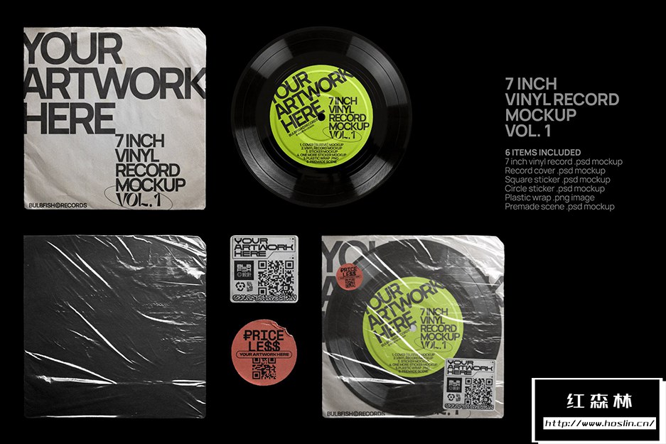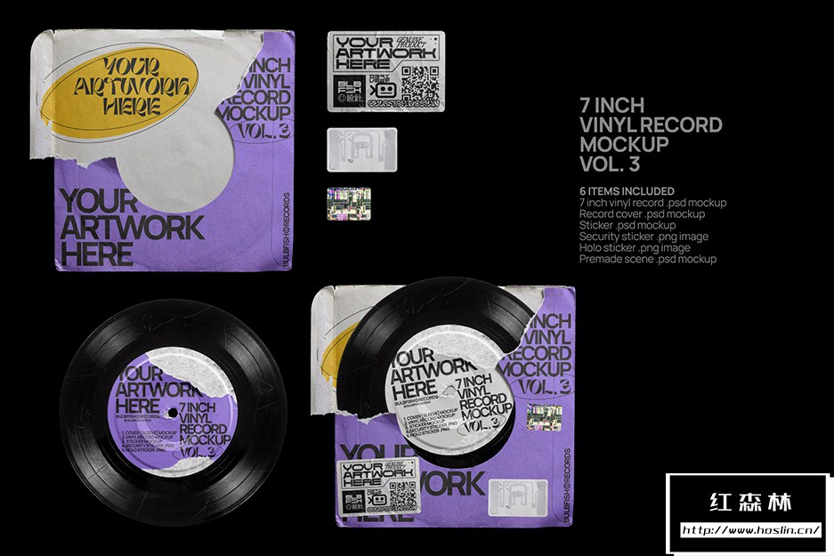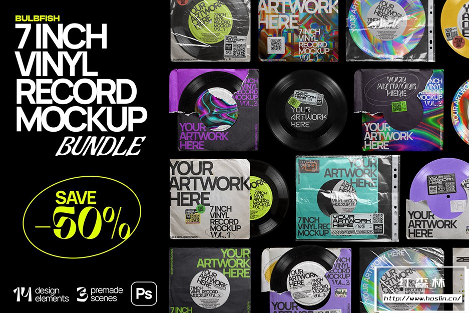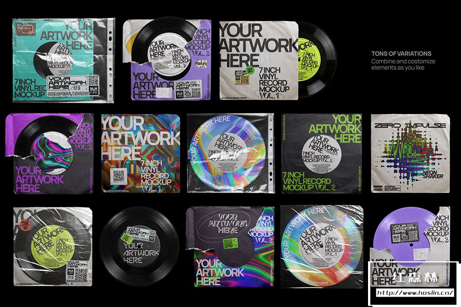 BULBFISH 7 英寸黑胶唱片模型系列的所有产品。这是一个完全可定制的黑胶唱片场景创建器。该包包括 14 种元素:黑胶唱片、唱片封面、贴纸、保鲜膜等。根据您的喜好自定义和组合元素,以创建您自己的独特场景。顺便说一句,包中已经包含 3 个预制场景。