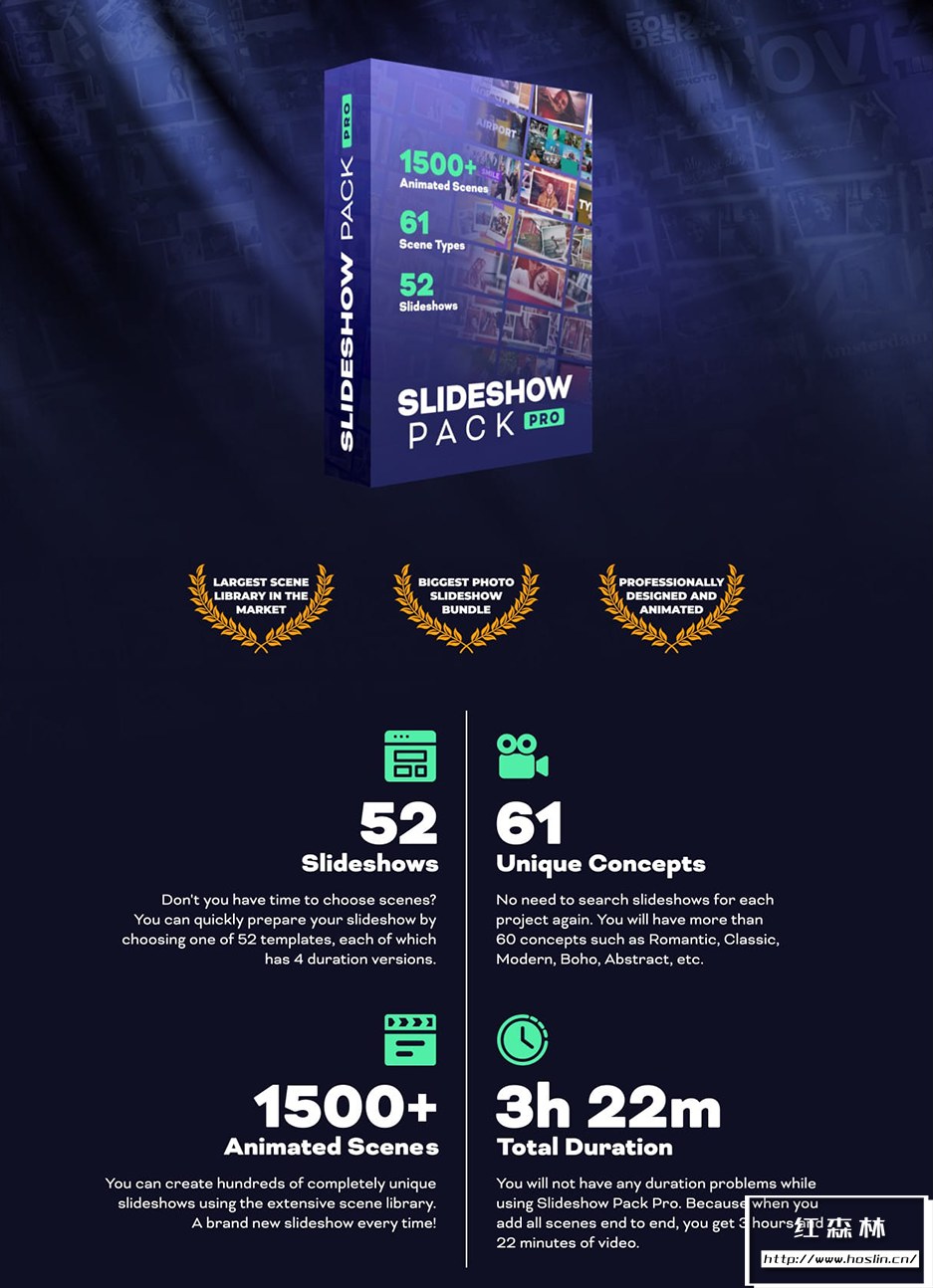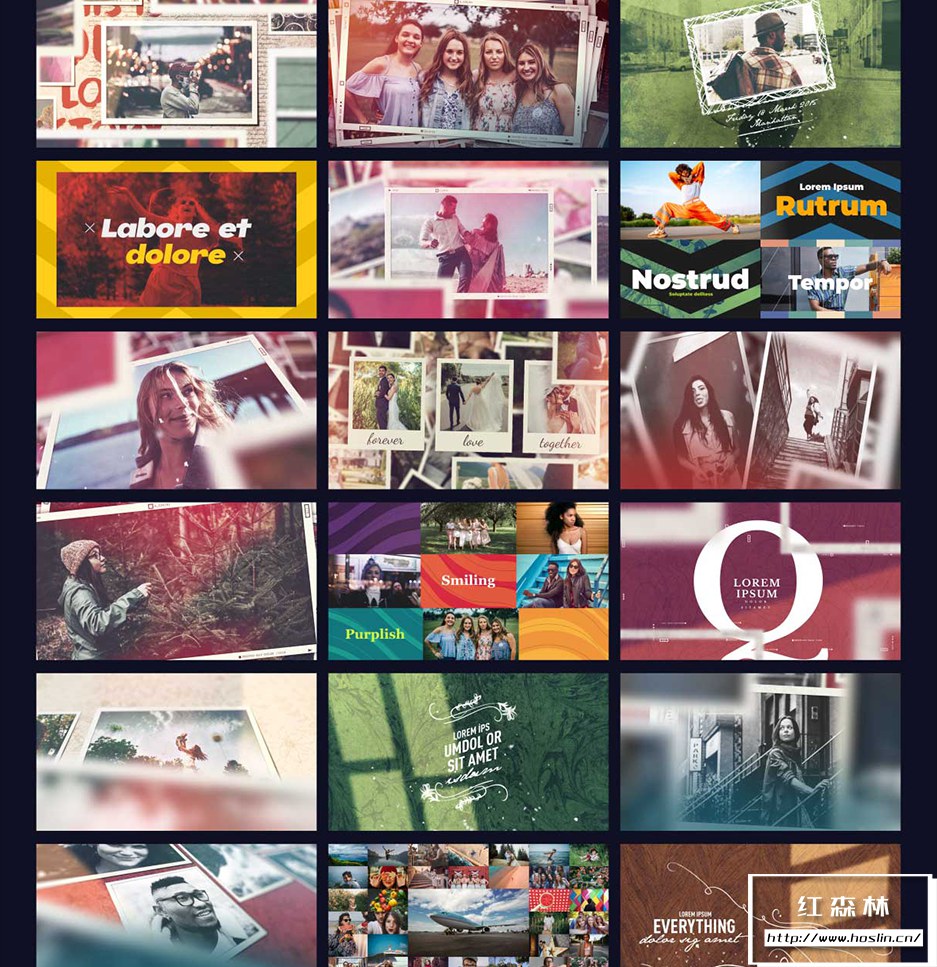 52套电子相册婚礼爱情回忆家庭日常照片展示动画是一组庞大的After Effects模板集。共有1500+动画场景,61个独特的概念,52个幻灯片动画。总时长3 小时 22 分钟,所有幻灯片的4 个持续时间版本,1920×1080全高清分辨率,超级好用。一键式工作流程,组合使用得到数以千计的可能性。可变的持续时间,快速渲染优化;包含在线场景类型目录和模板目录,包含视频教程。