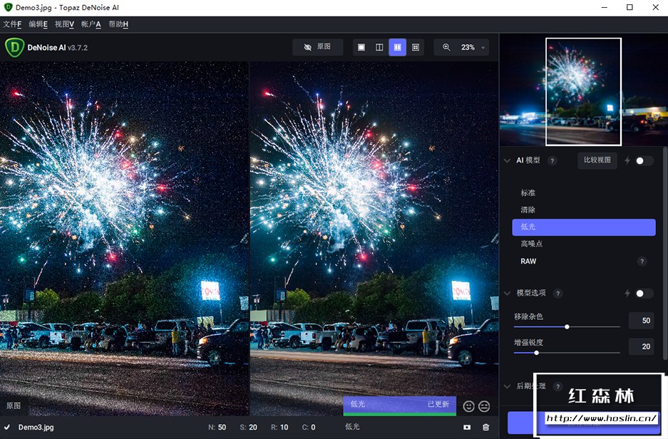 Topaz DeNoise AI是一款运用了AI人工智能技术的图像噪点消除工具,同时保留细节以获得清晰,清晰的结果。无论您是使用高ISO拍摄还是在低光照条件下拍摄,都会更正您的图像,而不会删除图像中的任何重要信息或图案。