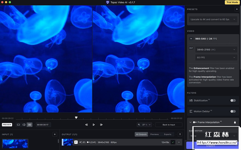 • AI 驱动的抖动稳定:Topaz Video AI的视频稳定模型还处于早期阶段,但在许多情况下仍比行业领导者表现更好。