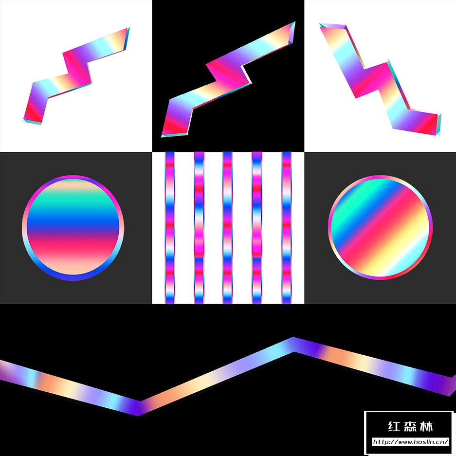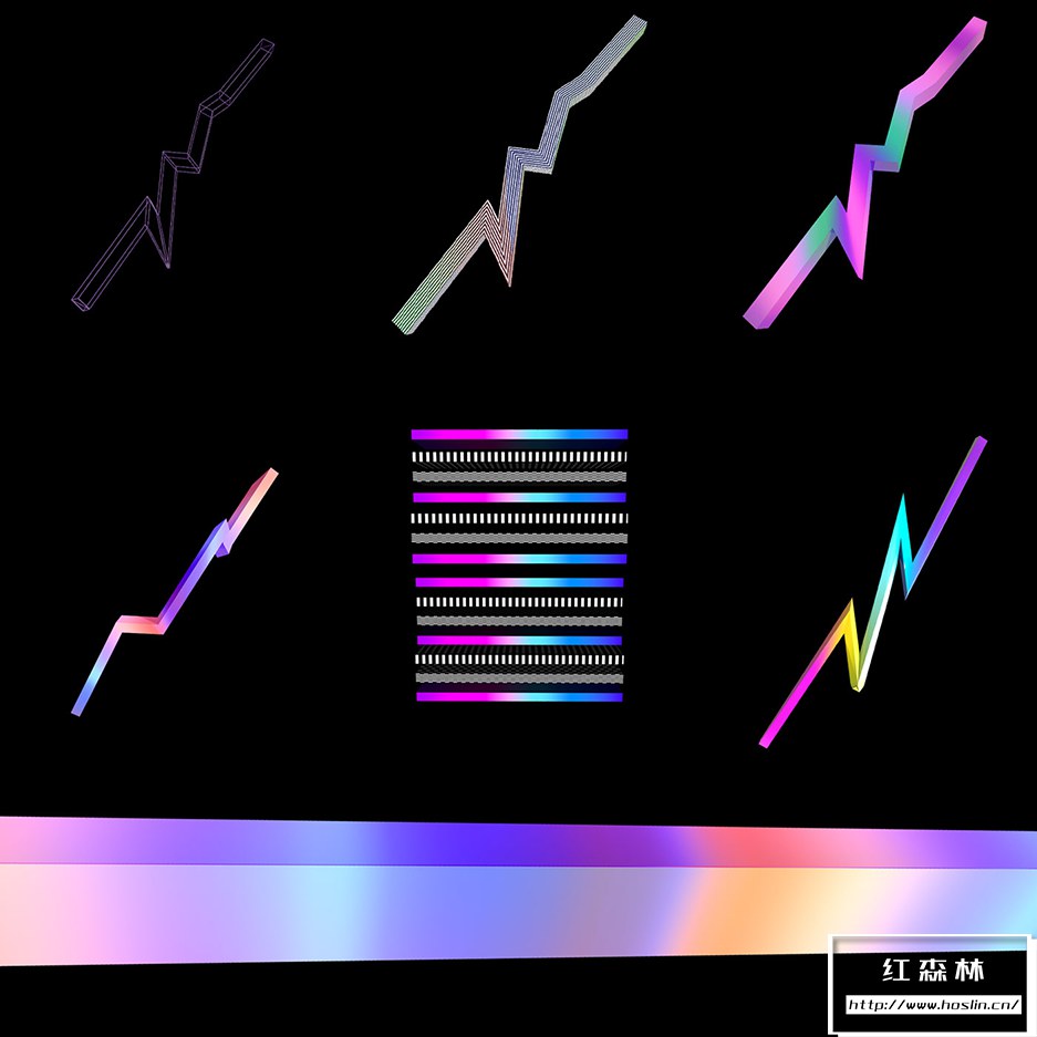 Retro Elements Pack 分为3D渐变条纹、方格图案 3D 对象、渐变复古形状、网格 3D 对象、网格背景、网格地板、网格人、虹彩大水晶、虹彩小水晶、棕榈树、模式、蒸汽波圈12个类别。文件大小:315M