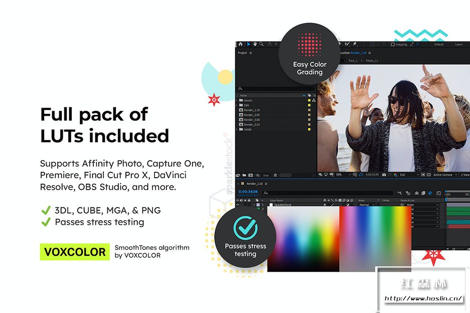 - SparkleStock LUT与 Affinity Photo、Premiere Pro 22.0+、Final Cut Pro v10.4+、DaVinci Resolve、Avid Media Composer、Cyberlink ColorDirector、OBS Studio、Vegas Pro、Spark AR Studio、Nuke、Filmora 兼容
