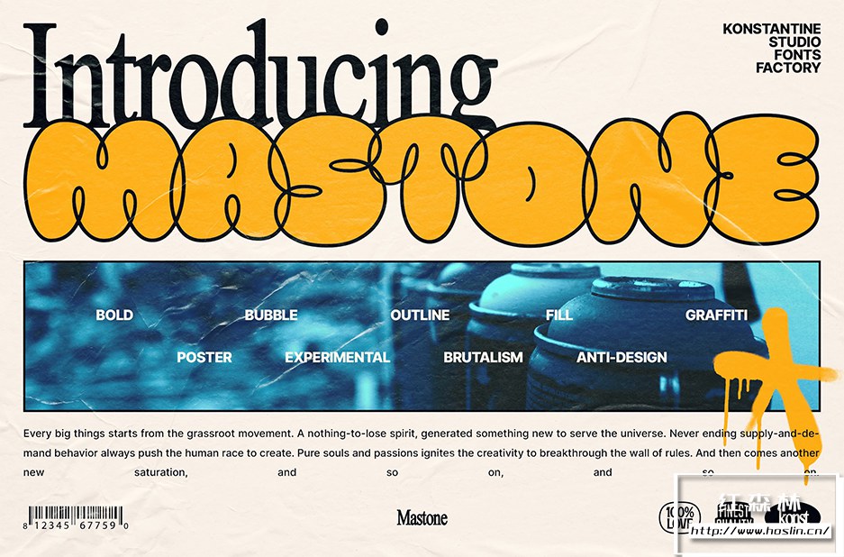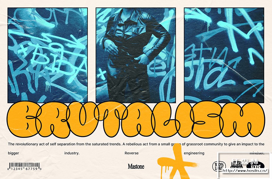 Mastone 的灵感来自于当今平面设计行业的气泡排版趋势。y2k 文化、街头视觉和野蛮主义的全新组合,以及吐泡泡涂鸦风格的实验性触感。