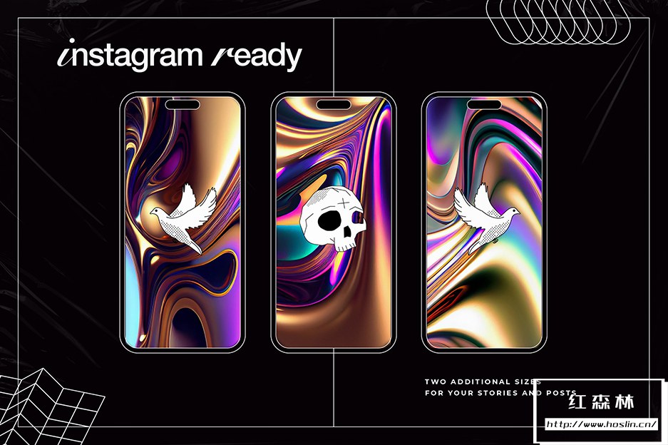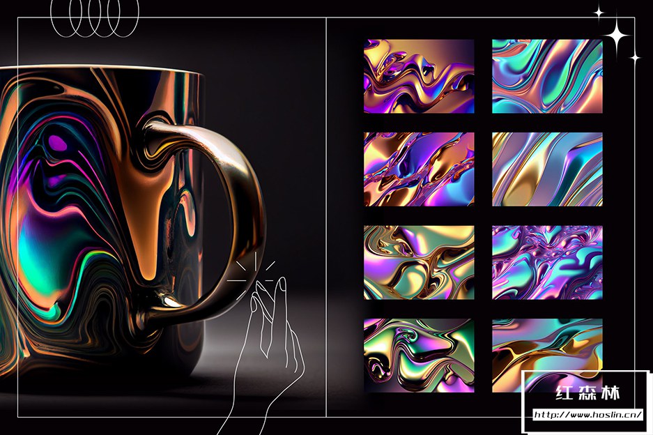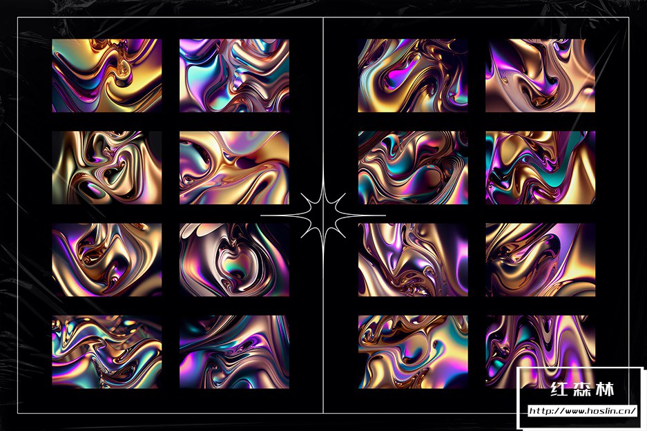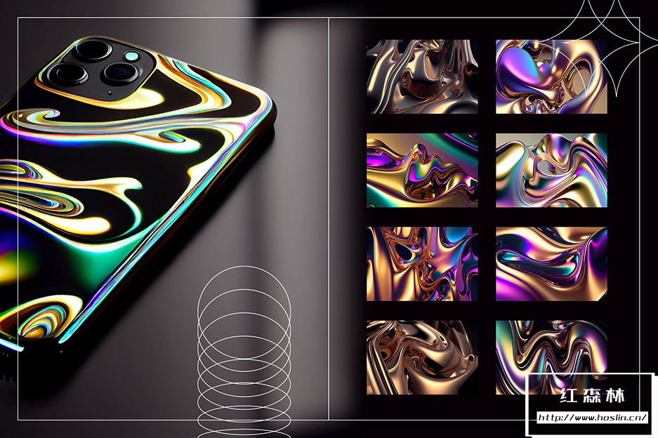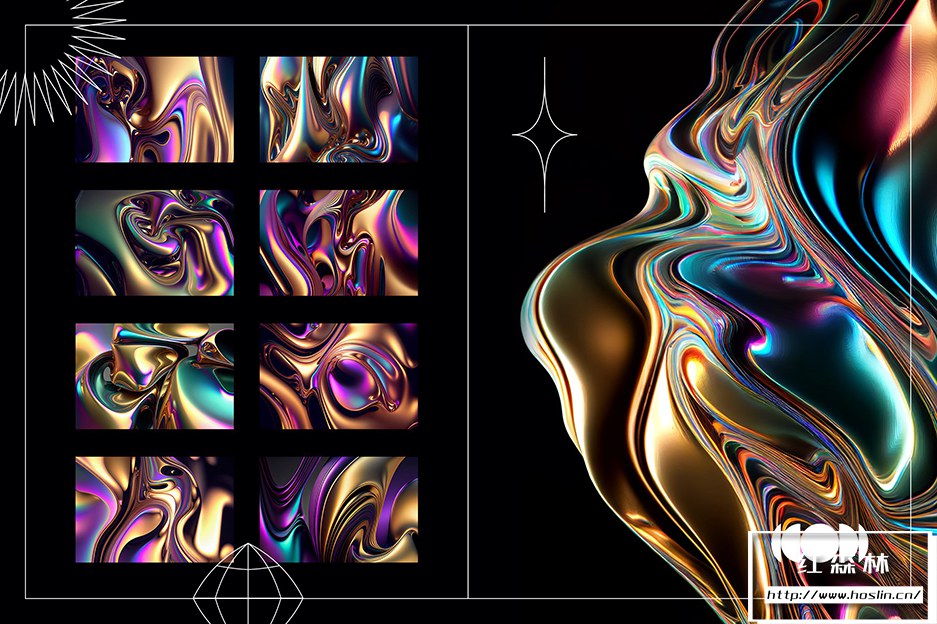 介绍液态金属 | 彩虹包。液态彩虹色金属图形纹理是数字图形设计元素,模仿具有彩虹色或金属光泽的液态金属外观。这些纹理是使用数字艺术技术的组合创建的。它们可用于各种设计项目,包括网站、徽标、印刷材料和 Instagram 等数字媒体。