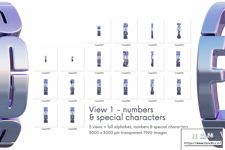 透明 PNG:44字符(3000×3000 像素 – 但字母尺寸略小)