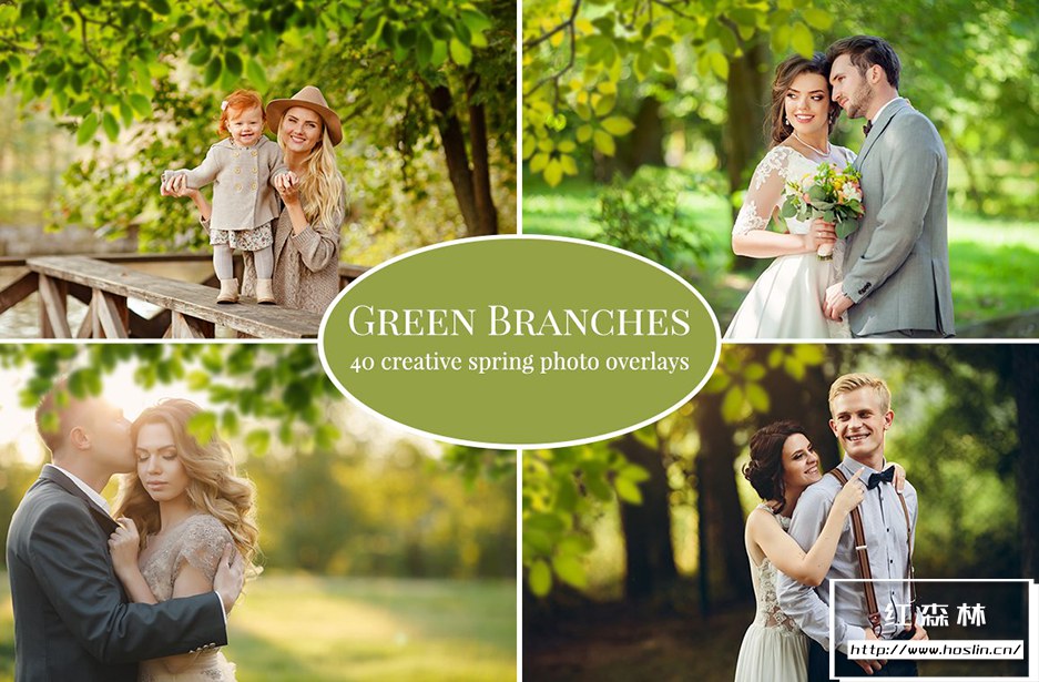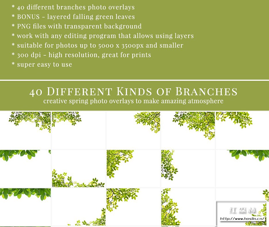 - 超级好用 Green Branches 照片叠加适用于任何允许使用图层的编辑软件(Photoshop CS 和 CC、Photoshop Elements、Zoner、Gimp 等)