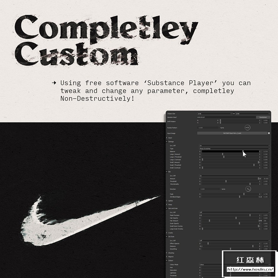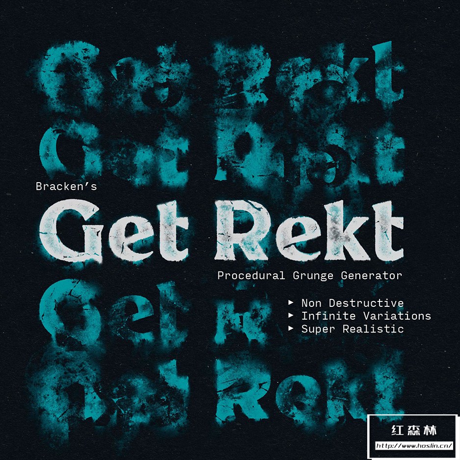 使用数学噪声和纹理,Get Rekt 允许使用它可以创建的效果实现看不见的可定制性级别。从湿墨水上的水滴到烧毁的高速公路标志,Get Rekt 都能创造。