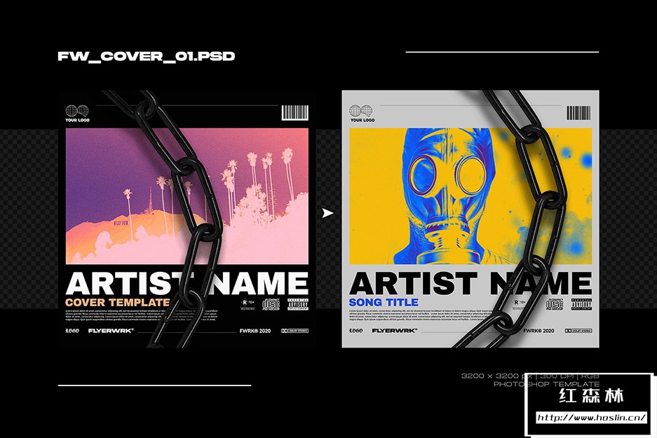 • 05 x 封面模板 3200×3200 像素(PSD 文件)