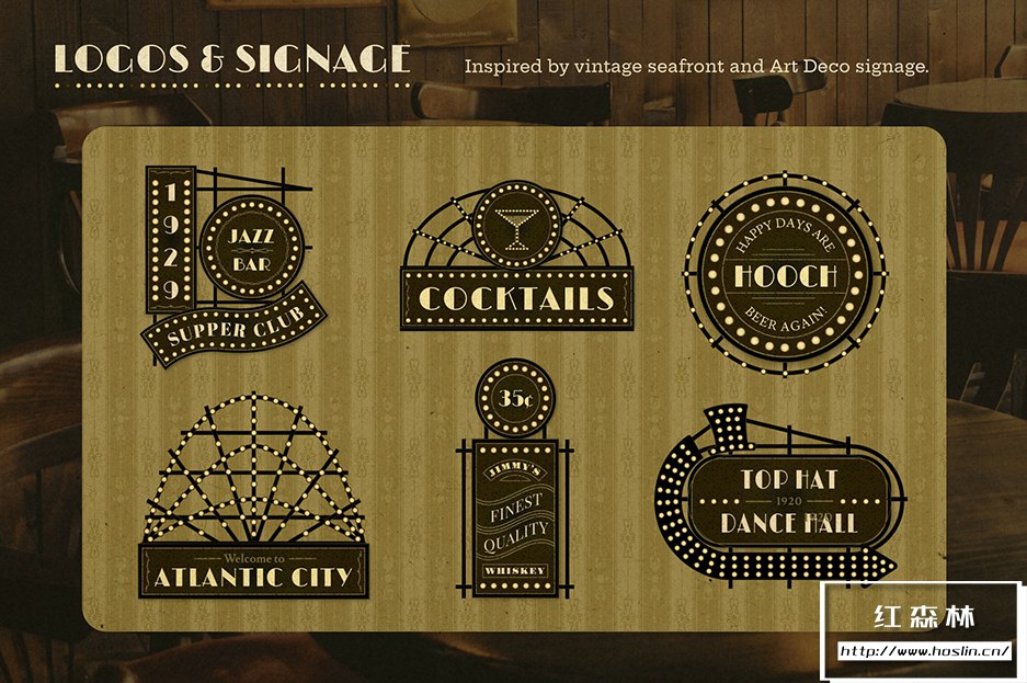 经典的装饰艺术设计模板,灵感来自昔日的海滨标牌。