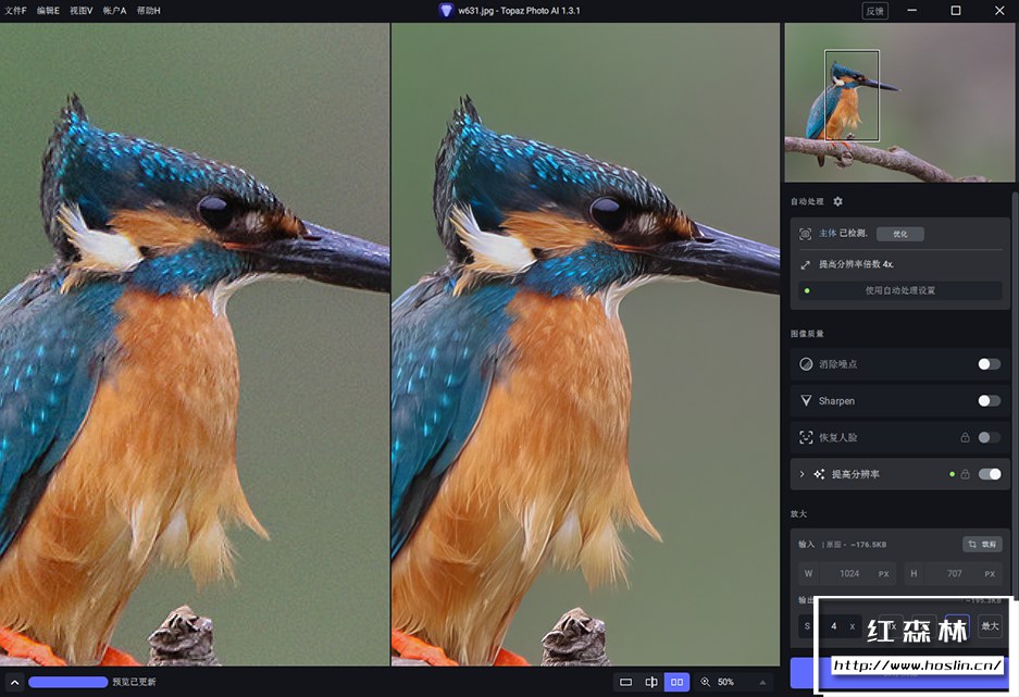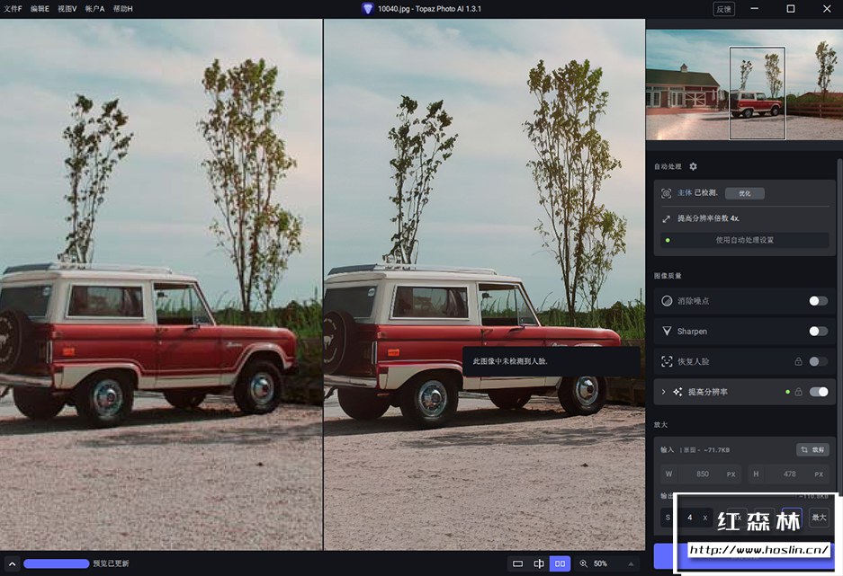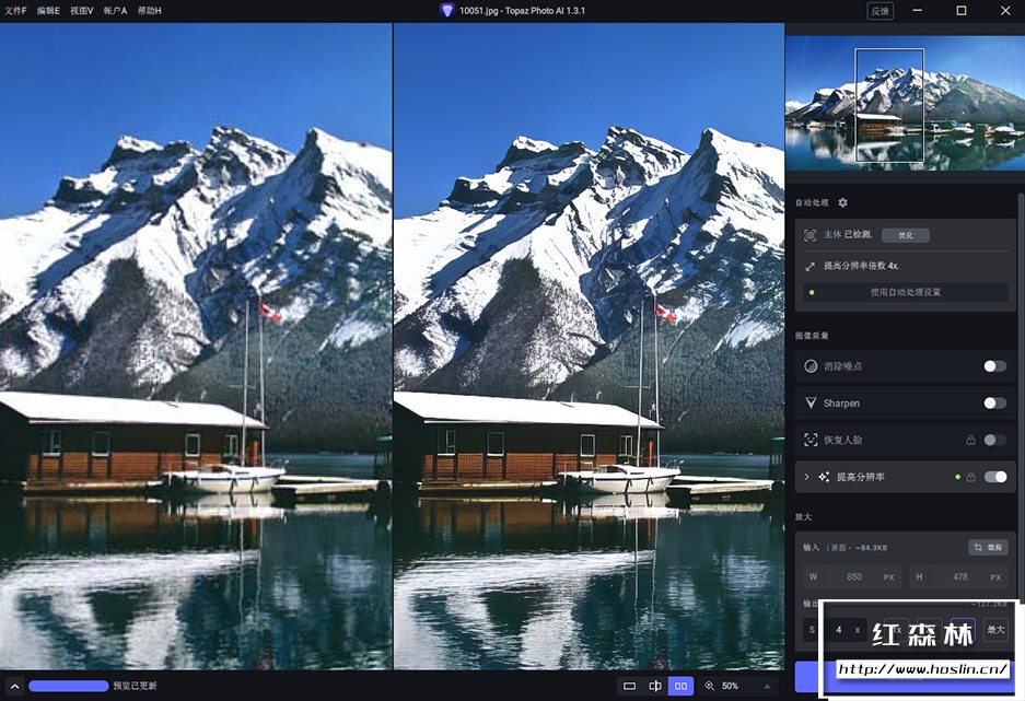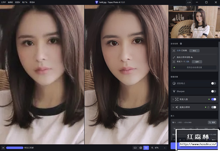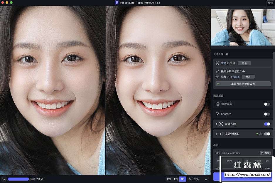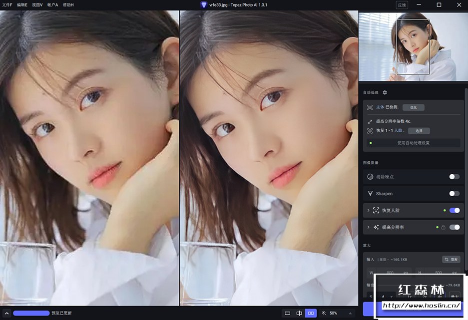 版本1.3.1 我们对标准增强模型进行了一些小的改进。这应该有助于解决各种问题,例如明亮区域偶尔的模糊,使其对JPEG压缩更强大,并具有更自然的面部。除此之外,我们还对应用程序进行了一些其他改进,包括提高缩略图生成性能、更新关闭警告对话框逻辑、更新缩略图上的工具提示以及标准化一些菜单项、文本和按钮。