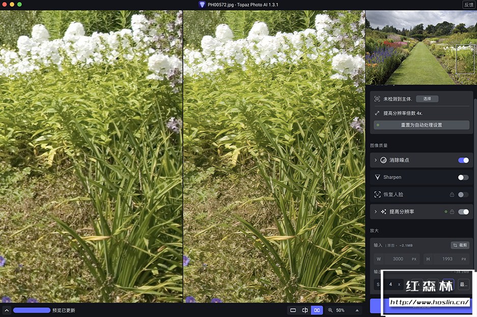 降噪(Topaz Denoise AI)在从数百万张图像中学习后,Topaz Photo AI 的降噪模块可以自动识别您图像的内容。它可以准确的确定真实图像细节和噪点之间的差异,准确度惊人。当然,并非所有图像都会有噪点,对于那些,Topaz Photo AI 将为您提供现代技术所能提供的最佳结果。