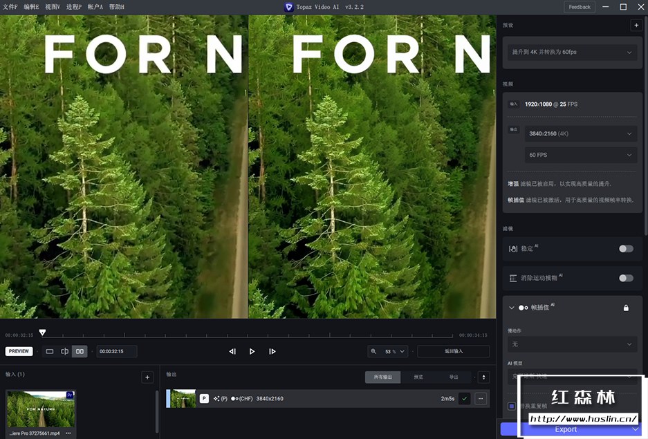 广受好评的视频AI画质增强软件 Topaz Video Enhance AI 迎来全新升级,并更名为“Topaz Video AI”。使用新的稳定模型、更智能的工作流程和改进的视频增强功能进行重建。Topaz Video AI让您可以无限制地访问世界领先的生产级神经网络,用于视频放大、去隔行、运动插值和抖动稳定——所有这些都针对您的本地工作站进行了优化。