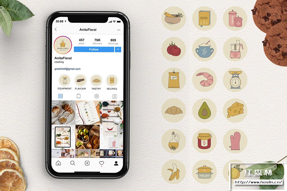 100 张手绘插图非常适合徽标、Instagram 亮点、名片、印刷品、文具、食谱卡等。