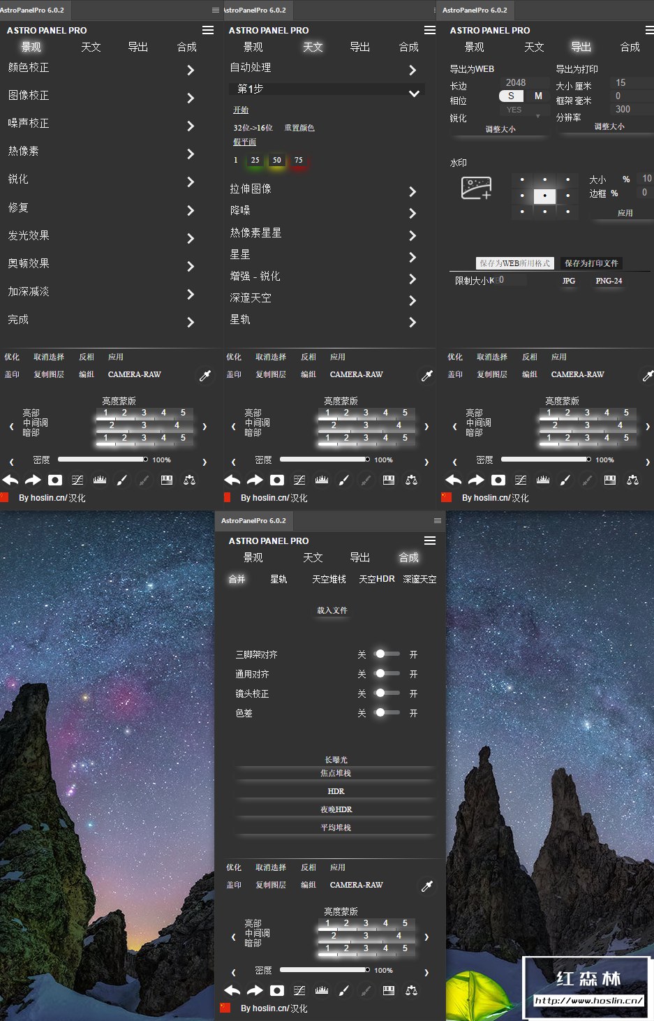 Astro Panel Pro v6.0.2是适用于Adobe Photoshop CC(2015+),Adobe Photoshop 2020和2021的最佳插件之一。它集成了对风景图像,银河系,深空图像,白天和夜晚风景进行数字处理的高级功能。