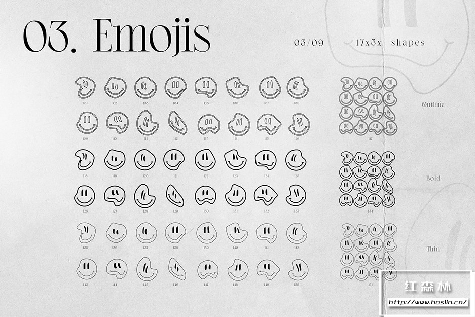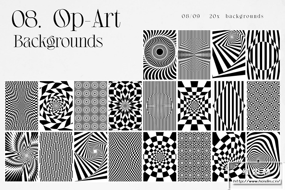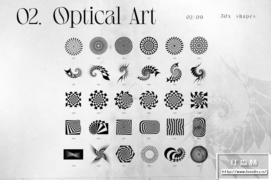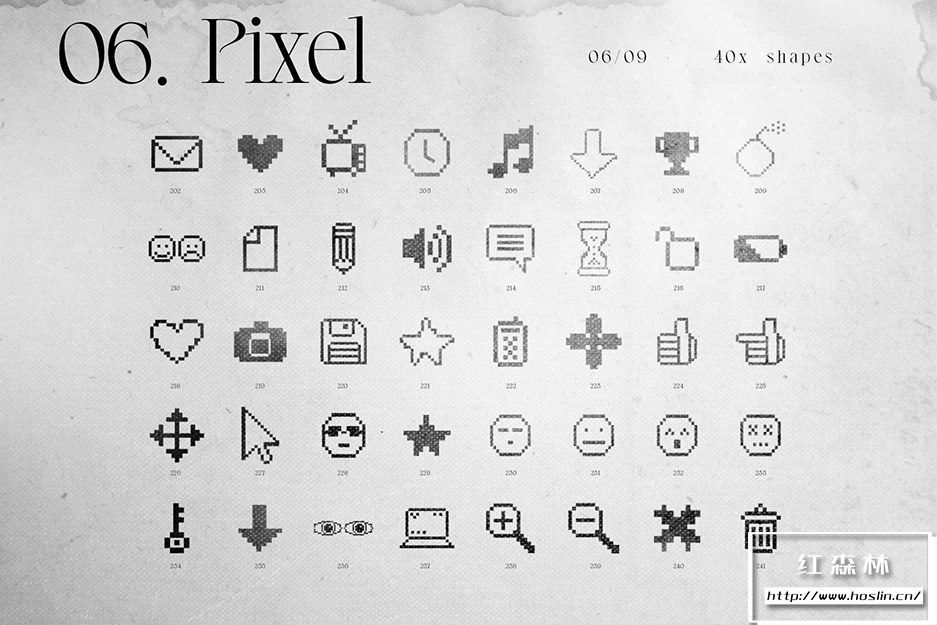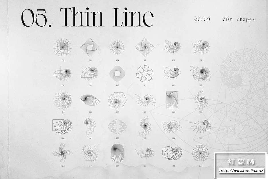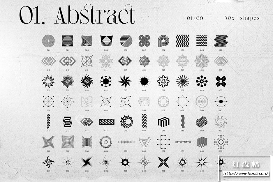 庞大的现代图形集包含 260 种不同的形状和 35 种背景。